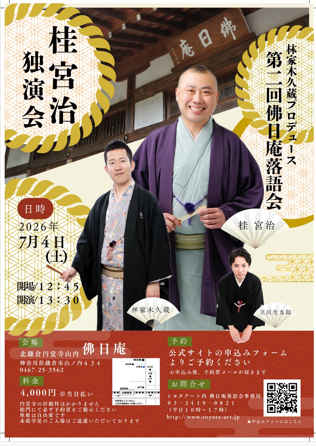 SNS 最新の情報は各SNSでご確認ください。 受付開始の通知をご希望の方は、下記ボタンをクリックしてください。 最近の投稿 林家木久蔵プロデュース第2回佛日庵落語会 「桂 宮治独演会」 第105回 北鎌倉落語会「桃月庵白酒の独演会」 新着記事 林家木久蔵プロデュース第2回佛日庵落語会 「桂 宮治独演会」 第105回 北鎌倉落語会「桃月庵白酒の独演会」 第104回 北鎌倉落語会「春風亭一之輔の独演会」 第103回 北鎌倉落語会「柳家三三の独演会」 第102回 北鎌倉落語会 百回突破記念特別公演2「松村邦洋の寄席」 過去のイベント 2026年4月 2025年4月 2025年3月 2024年12月 2024年11月 2024年9月 2024年7月 2024年6月 2024年5月 2024年3月 2023年11月 2023年9月 2023年7月 2023年3月 2023年1月 2022年10月 2022年6月 2022年5月 2022年3月 2022年1月 2021年11月 2021年9月 2021年7月 2021年5月 2021年3月 2021年1月 2020年11月 2020年9月 2020年7月 2020年5月 2020年3月 2020年1月 2019年11月 2019年9月 2019年7月 2019年5月 2019年3月 2019年1月 2018年12月 2018年11月 2018年10月 2018年9月 2018年7月 2018年6月 2018年5月 2018年4月 2018年3月 2018年2月 2018年1月 2017年12月 2017年11月 2017年10月 2017年9月 2017年7月 2017年6月 2017年5月 2017年4月 2017年3月 2017年2月 2017年1月 2016年12月 2016年11月 2016年10月 2016年7月 2016年6月 2016年5月 2016年3月 2016年2月 2016年1月 2015年12月 2015年11月 2015年10月 2015年9月 2015年6月 2015年5月 2015年3月 2015年2月 2015年1月 2014年12月 2014年9月 2014年6月 2014年3月 2014年1月 2013年12月 2013年10月 2013年7月 2013年6月 2013年4月 2013年3月 2013年1月 2012年12月 2012年11月 2012年9月 2012年8月 2012年7月 2012年5月 2011年9月 2011年7月